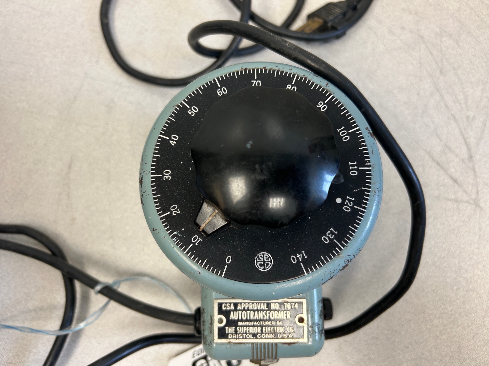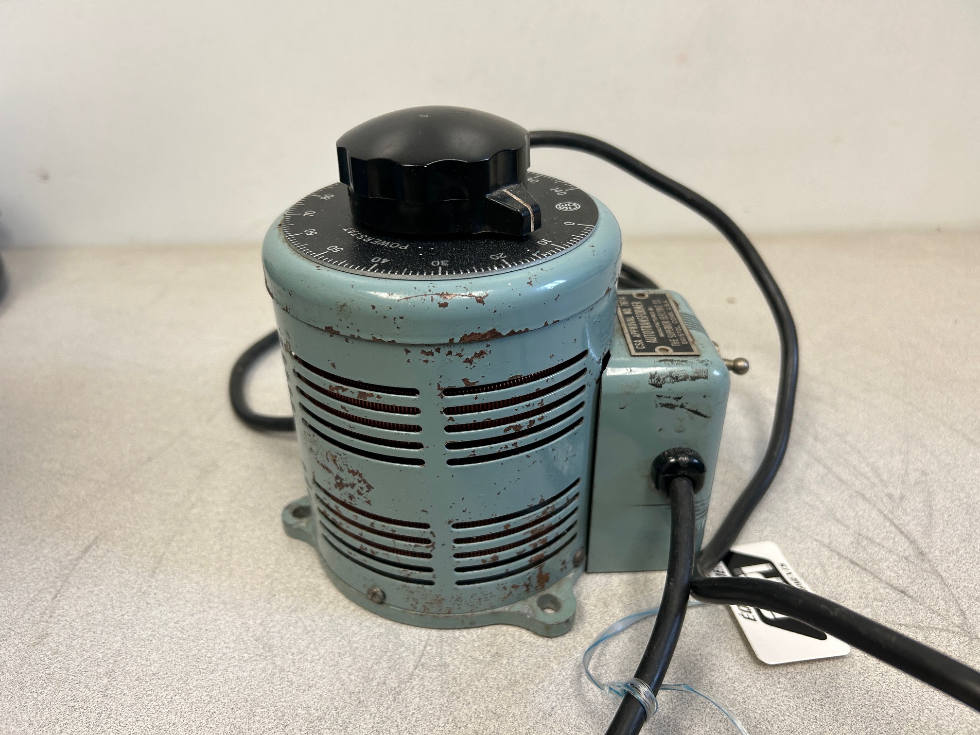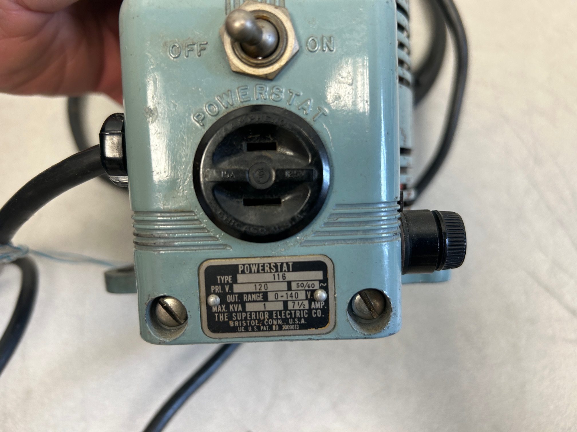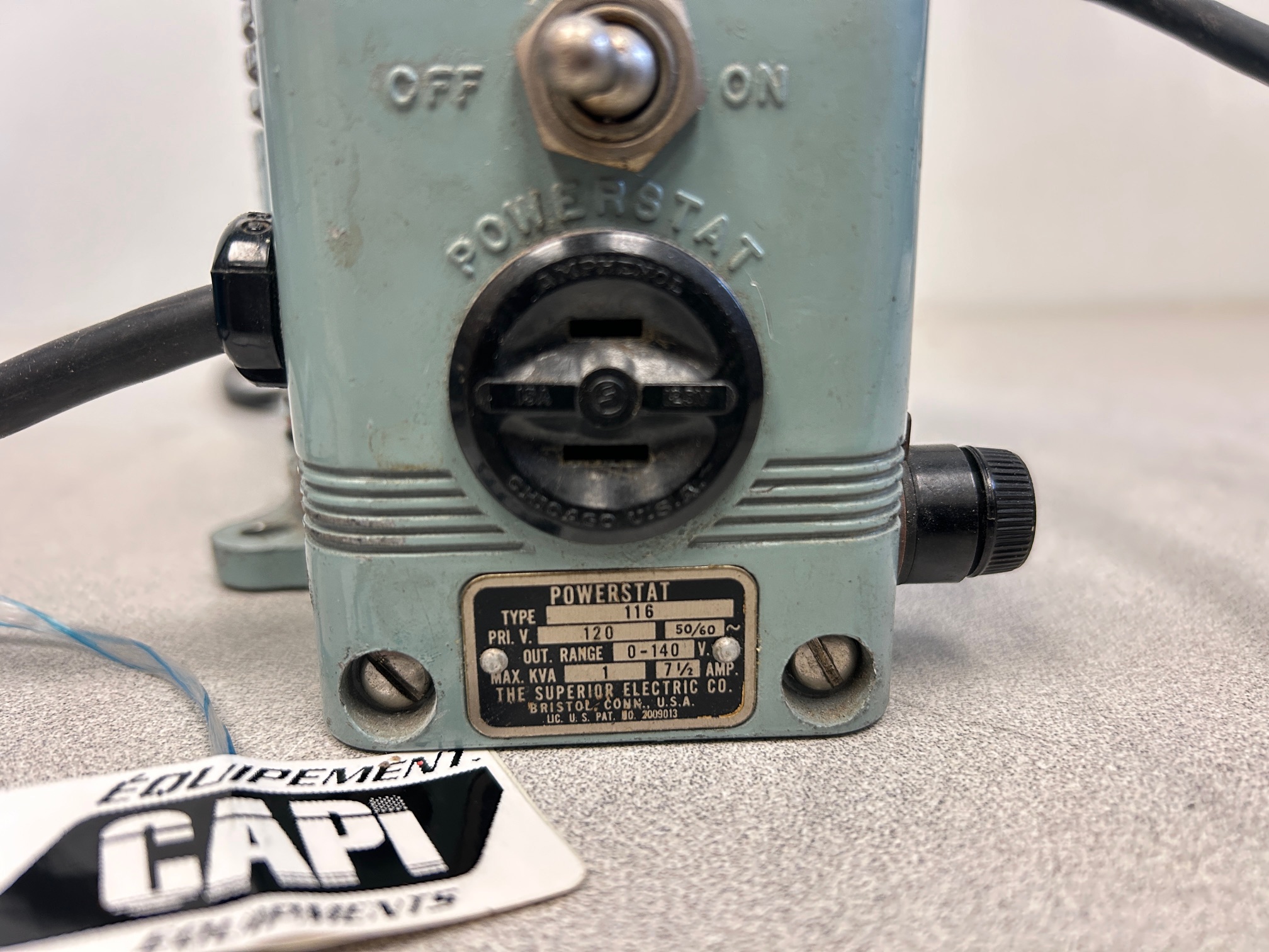 Variateur de voltage Powerstat model 116 (variac), entrée de 1210V, sortie de 0-140Volt, 7.5 ampères, en moyenne condition, le prix es ten conséquence.